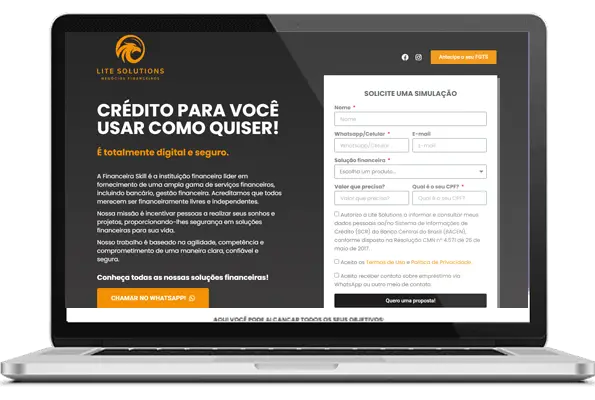 A Lite Solutions precisa das informações que você fornece para fazer a simulação de crédito junto ao Banco e entrar em contato com relação às suas linhas de crédito.